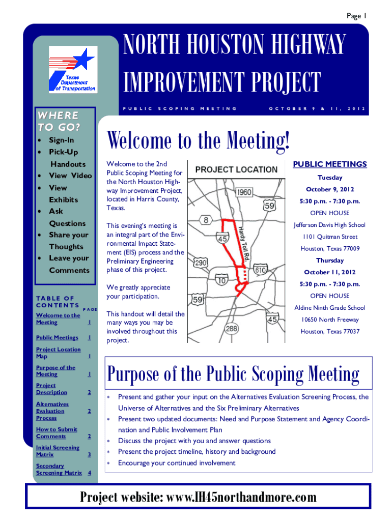 TO GO? S C O P I N GM E T I N GO C T O B E R9&1 1, 2 0 1 2Welcome to the Meeting! SignInPickUpHandouts