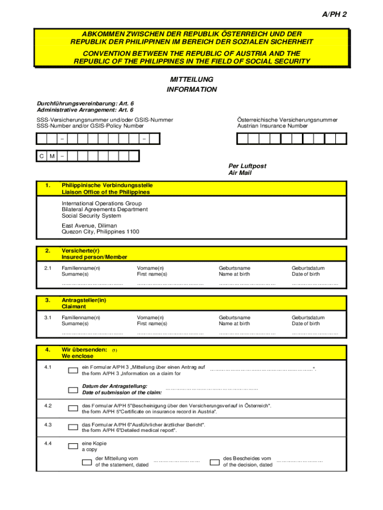 A/PH 2 ABKOMMEN ZWISCHEN DER REPUBLIK STERREICH UND DER REPUBLIK DER PHILIPPINEN IM BEREICH DER SOZIALEN SICHERHEIT CONVENTION BETWEEN THE REPUBLIC OF AUSTRIA AND THE REPUBLIC OF THE PHILIPPINES IN