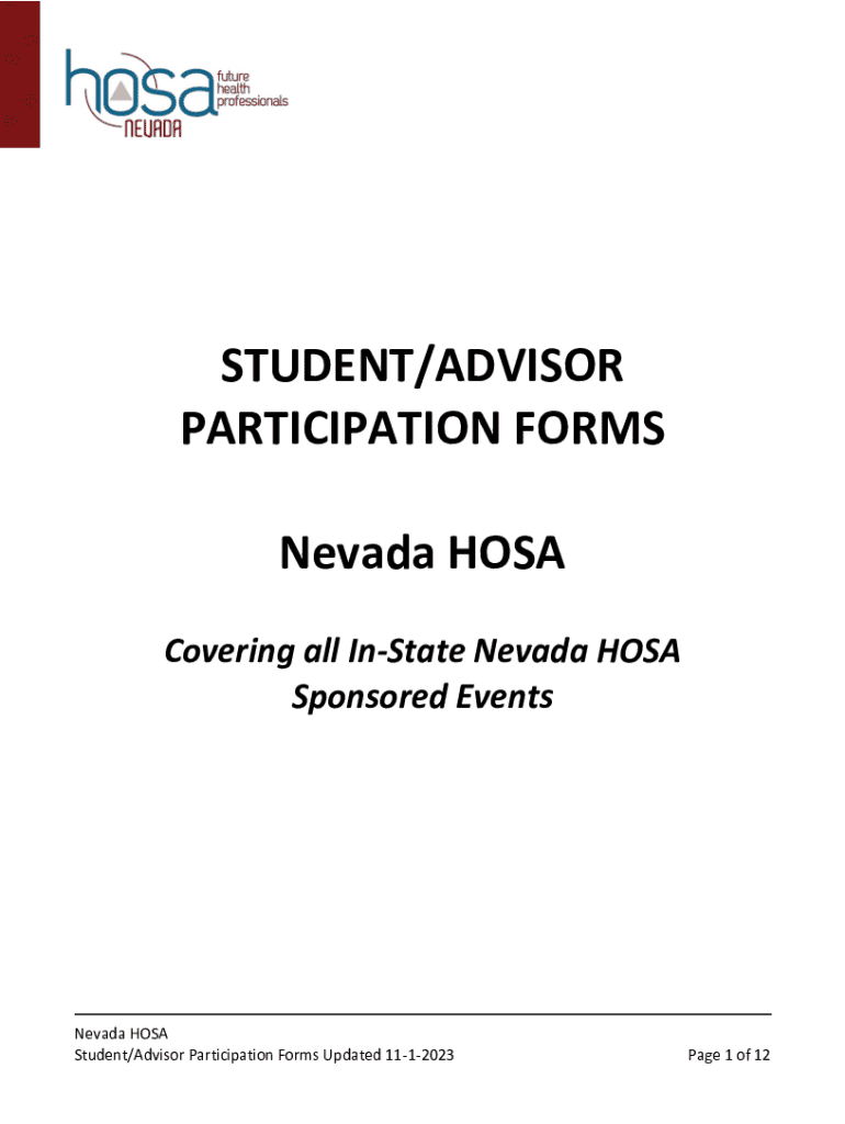 Get the free Nevada HOSA Participant and Advisor Forms 11-5-2023 V2