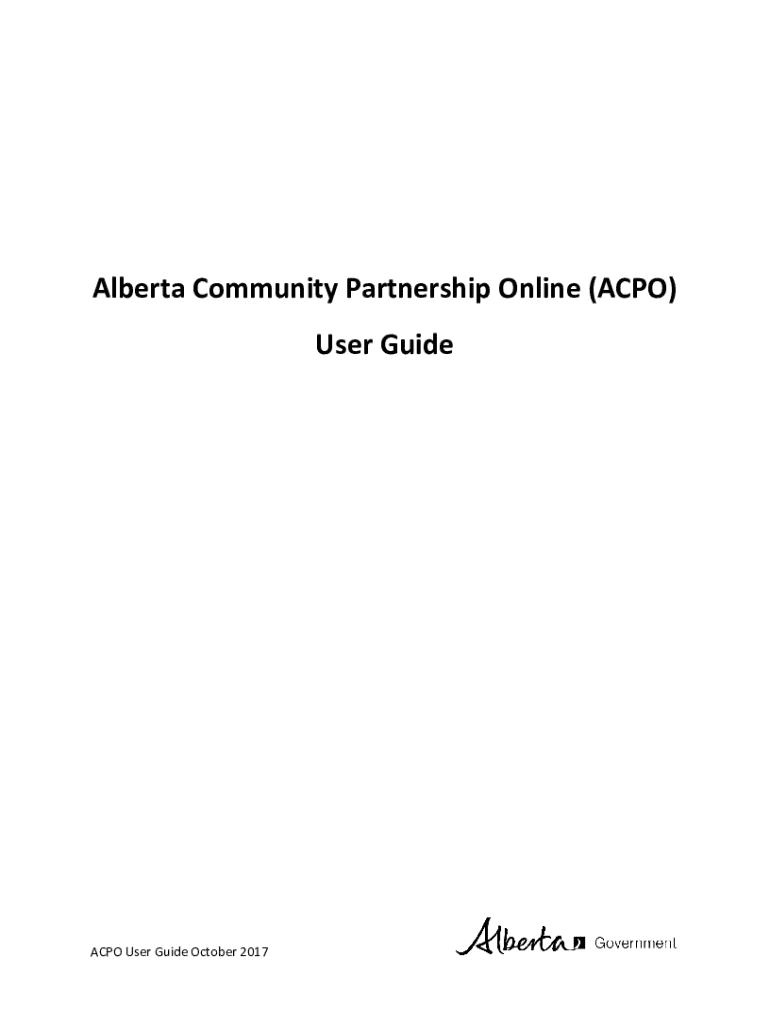 Alberta Community Partnership Online (ACPO) User GuideACPO User Guide October 2017ACPO User GuideContents 1. 2. 3. 4. 5. 6. 7.About the Alberta Community Partnership Online Web Application .... The
