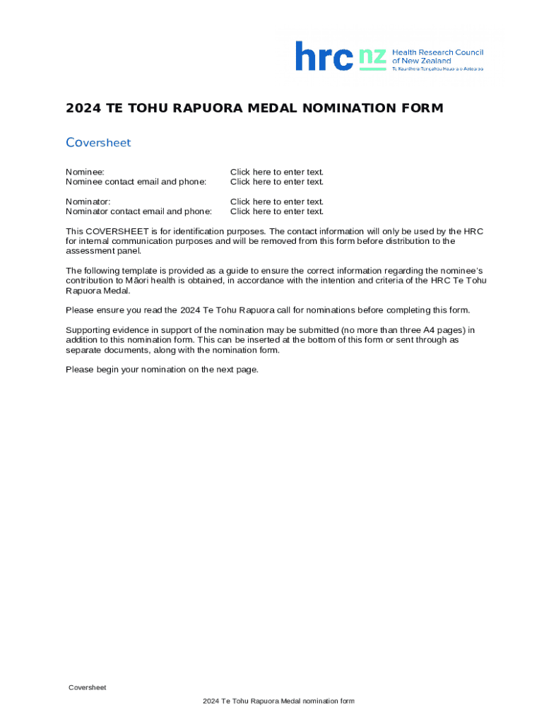 What is Te Tohu Rapuora Nomination Form?