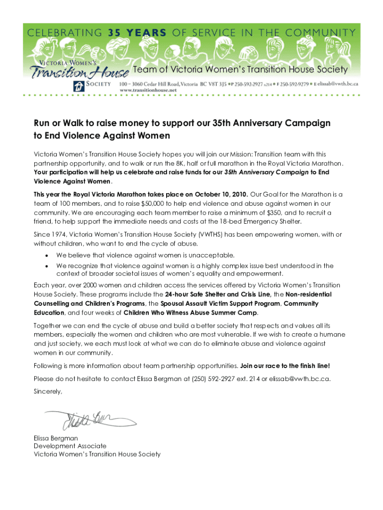 Team of Victoria Women's Transition House Society or Walk to raise money to support our 35th Anniversary Campaign