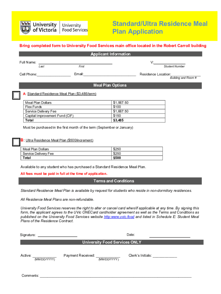 Bring completed form to University Food Services main office located in the Robert Carroll building