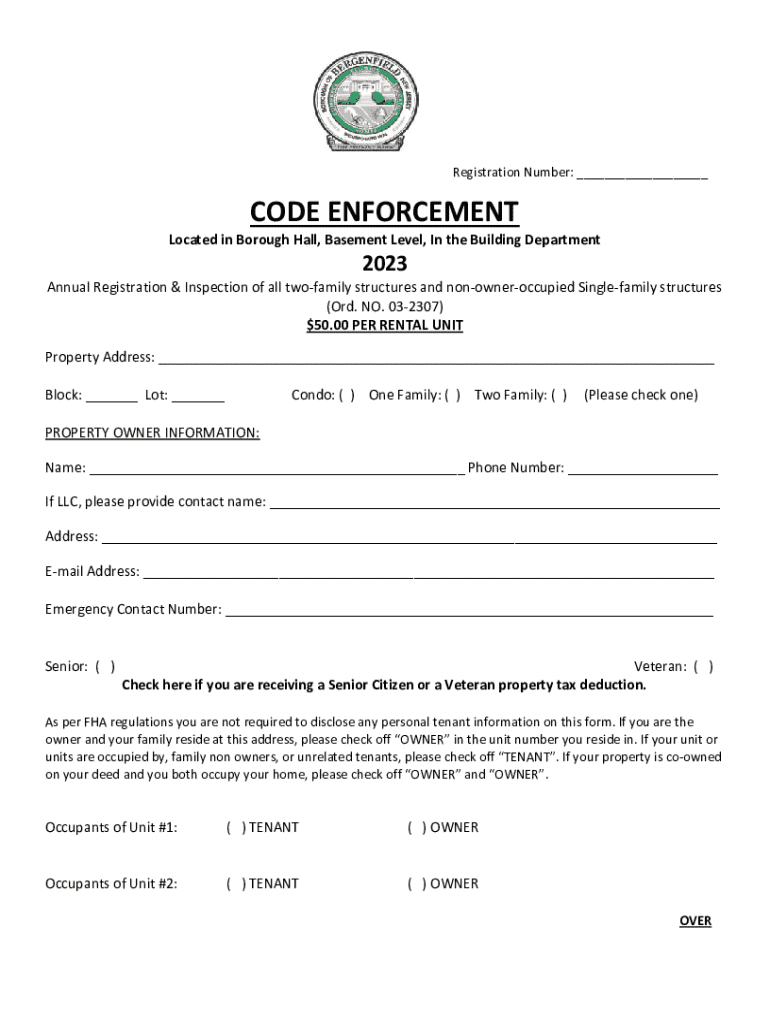 Located in Borough Hall, Basement Level, In the Building Department2023Annual Registration & Inspection of all two family structures and nonowneroccupied Single