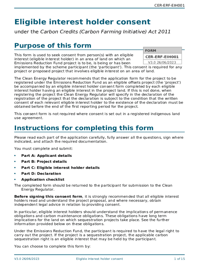 Instructions for the Eligible interest holder consent for Western Australia ... form