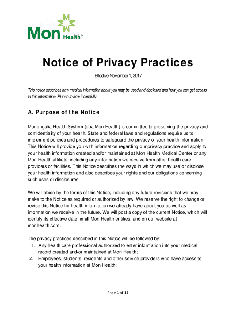 Obtain a copy of the notice of privacy practices from the healthcare provider or organization.