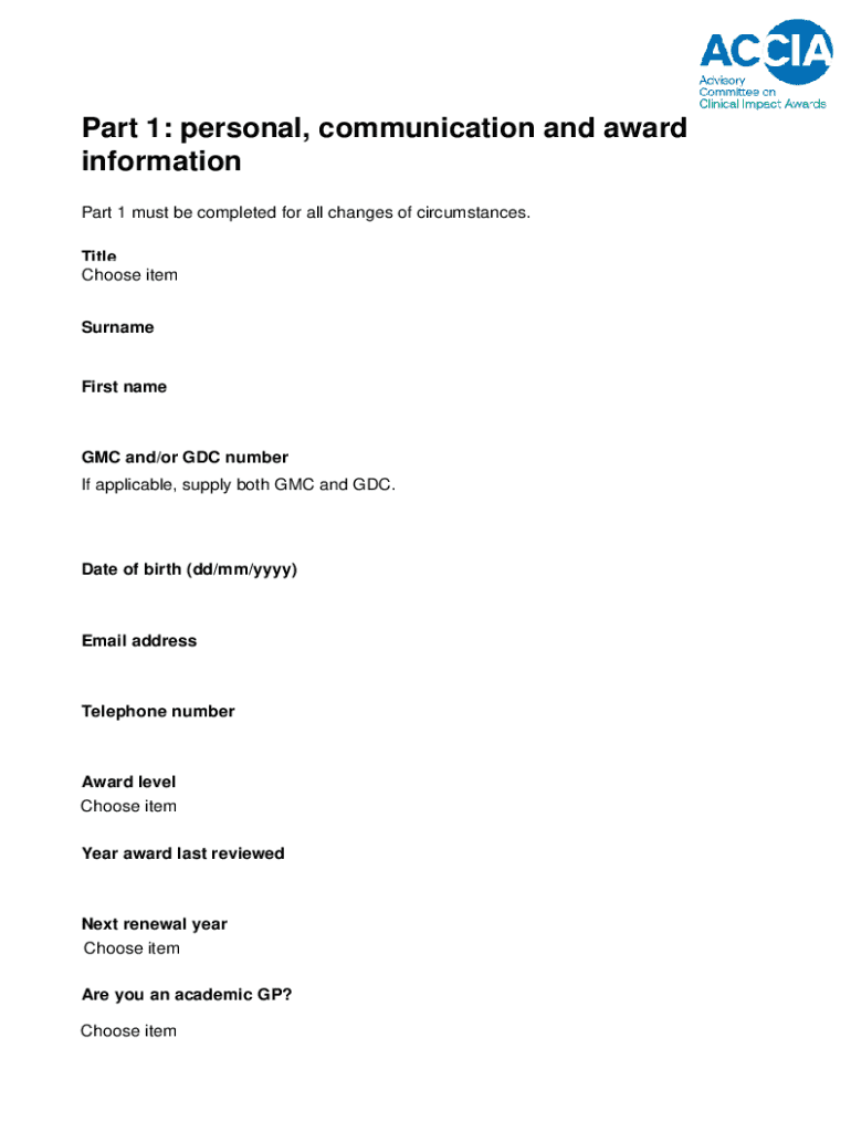 Change in employment of NCIA and NCEA holders: form Published February 2024Contents Part 1: personal, communication and award information ..................................................... 2 Part