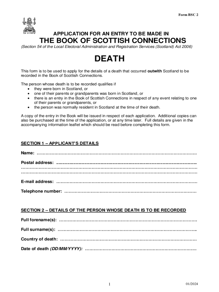 Get the free bsc2-application-form-death.pdf