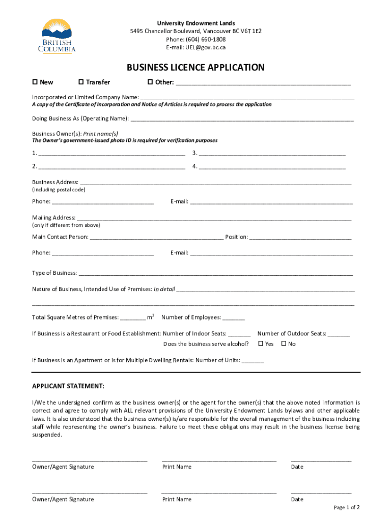 Email: UEL@gov.bc.caBUSINESS License APPLICATION
