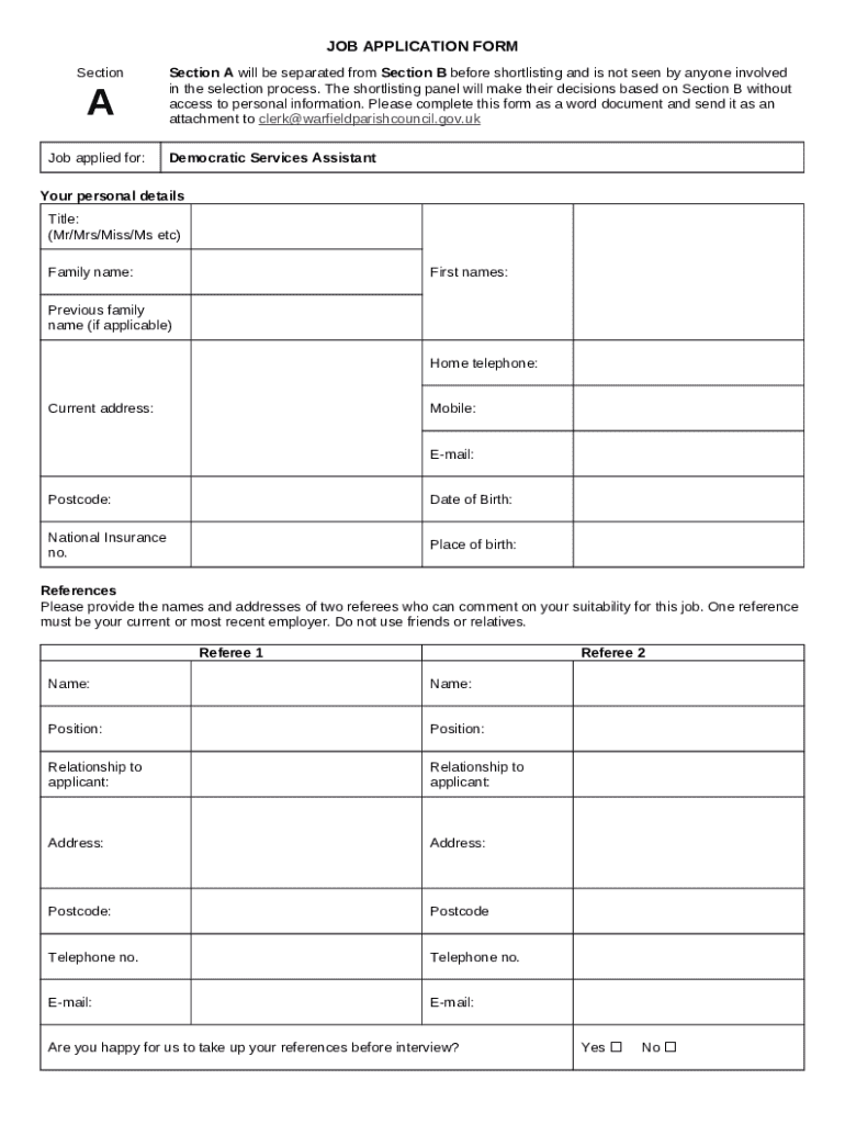 How to fill out Section A will be separated from Section B before shortlisting and is not seen by anyone involved in the selection process