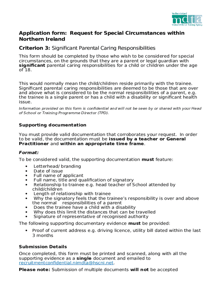 What is Application : Request for Special Circumstances within ... Form?