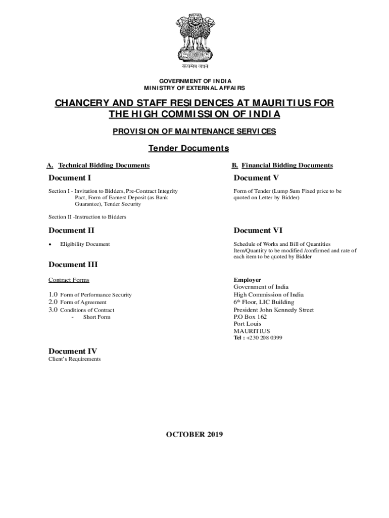 MINISTRY OF EXTERNAL AFFAIRSCHANCERY AND STAFF RESIDENCES AT MAURITIUS FOR