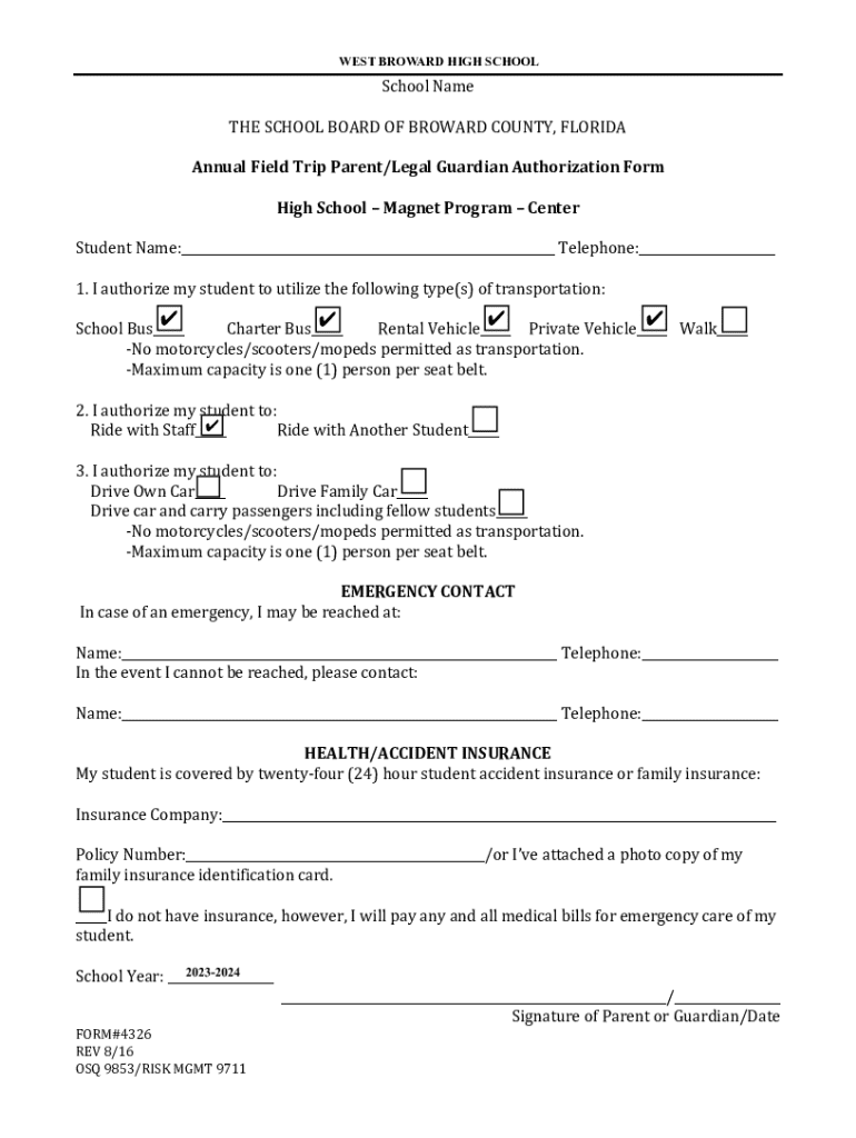 Annual Field Trip Parent/Legal Guardian Authorization Form