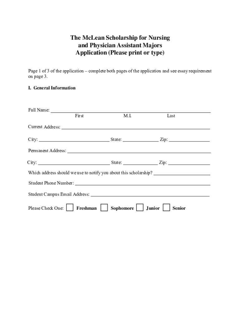 The McLean Scholarship for Nursing and Physician Assistant Majors GUIDELINES Description & Purpose:The McLean Scholarship for Nursing or Physician Assistant Majors is provided through the Association