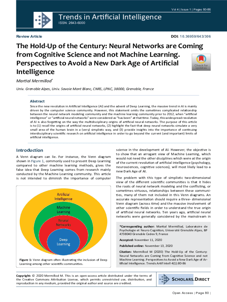 Extends in Artificial Intelligence 4 | Issue 1 | Pages 8086ISSN: 26436000Review Article DOI: 10.36959/643/306The Holdup of the Century: Neural Networks are Coming
