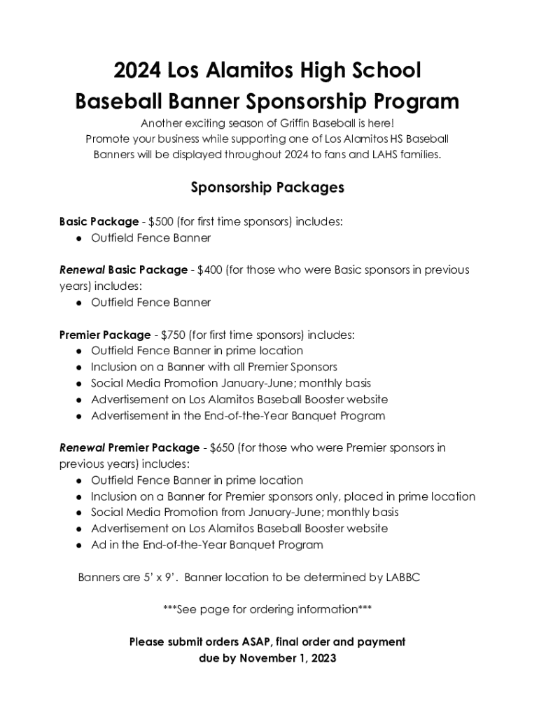 Baseball Banner Sponsorship Program