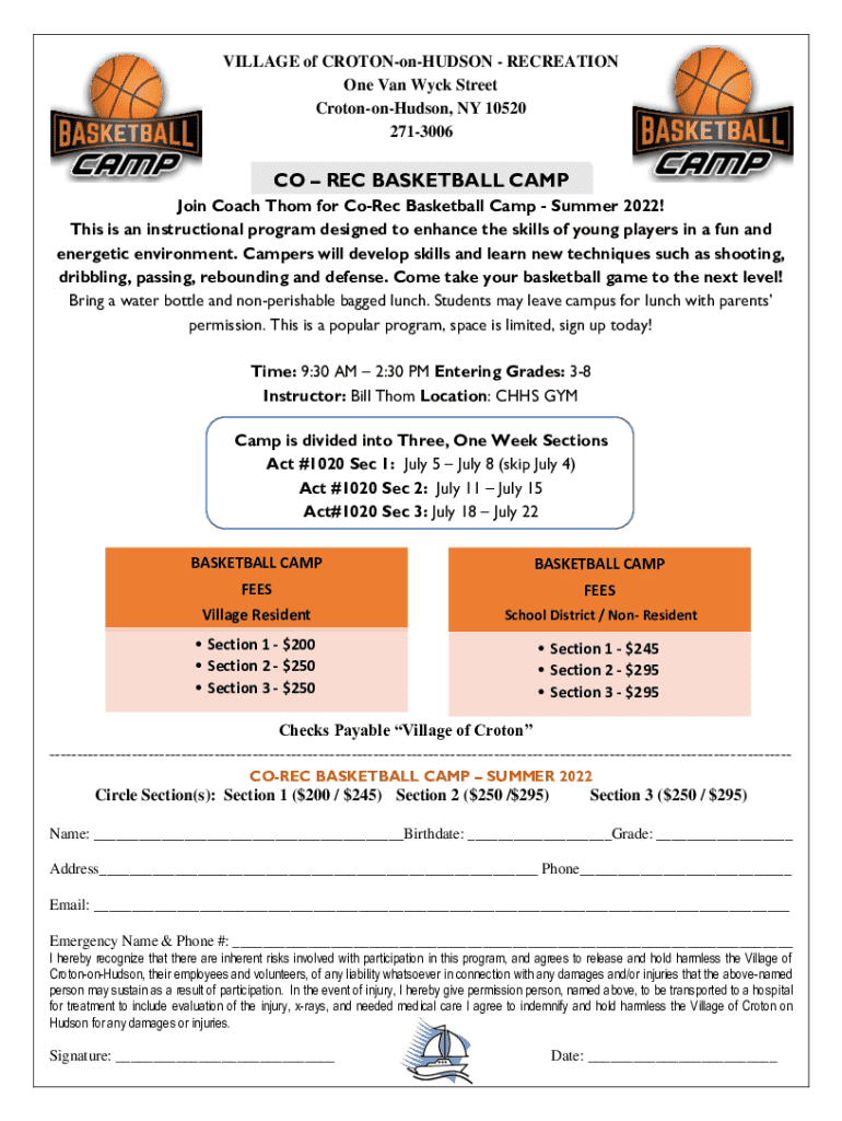 Get the free CO REC BASKETBALL CAMP Croton-on-Hudson NY