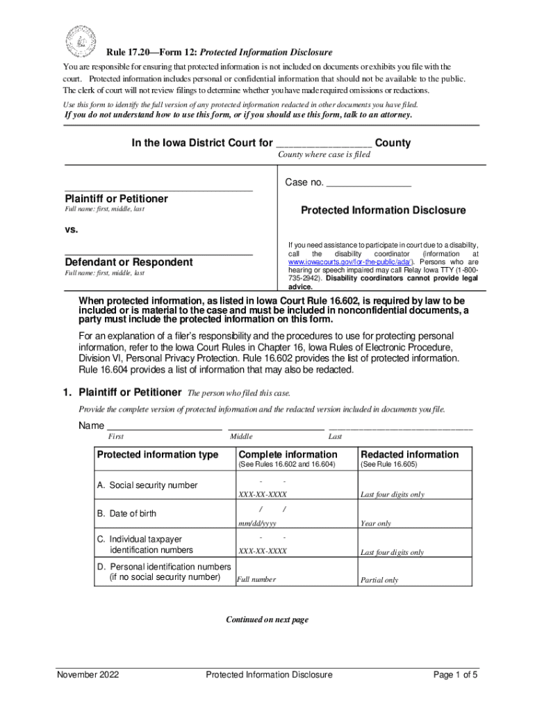 Get the free Rule 17.20Form 12: Protected Information Disclosure