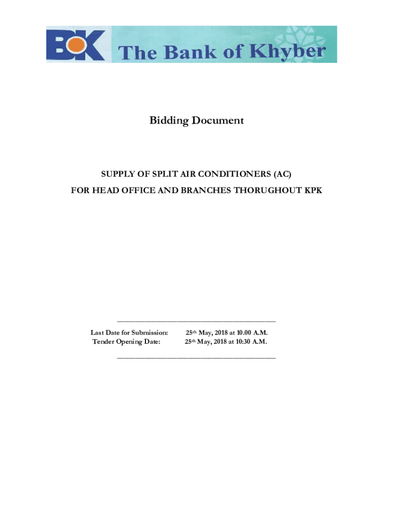 Bidding DocumentSUPPLY OF SPLIT AIR CONDITIONERS (AC)