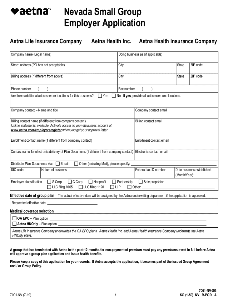 Nevada Small GroupEmployer ApplicationAetna Life Insurance CompanyAetna Health Inc. Aetna Health Insurance CompanyCompany name (Legal name)Doing business as (if applicable)Street address (PO box not