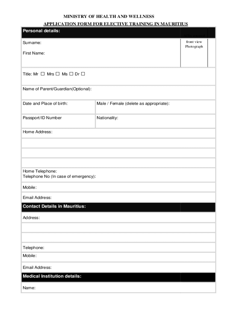 APPLICATION FORM FOR ELECTIVE TRAINING IN MAURITIUS