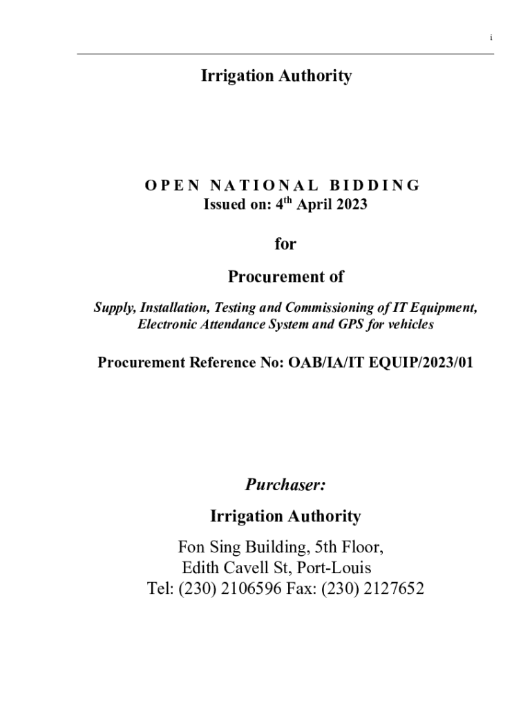 Irrigation AuthorityOPEN NATIONAL BIDDING