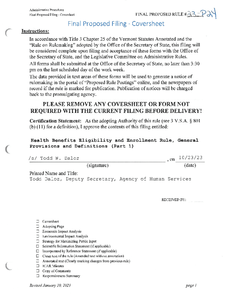Final Proposed Filing CoversheetFINAL PROPOSED RULE #Final Proposed Filing Cover sheet
