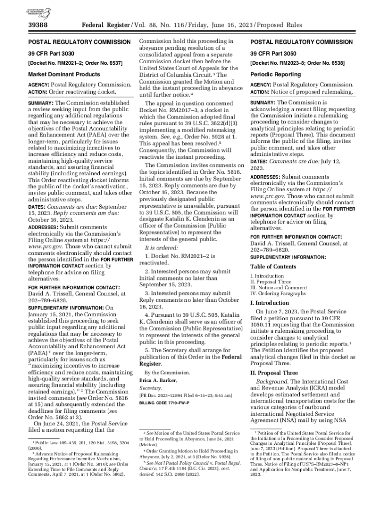39388Federal Register / Vol. 88, No. 116 / Friday, June 16, 2023 / Proposed RulesPOSTAL REGULATORY COMMISSION
