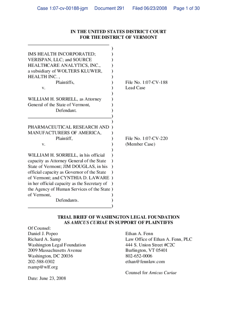 Get the free Brief of respondent for Sorrell v. IMS Health Inc., 10-779