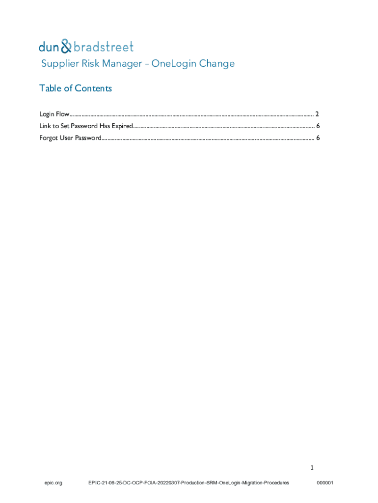 dun& bradstreetSupplier Risk Manager OneLogin Change Table of Contents Login Flow....................................................................................................................................................................