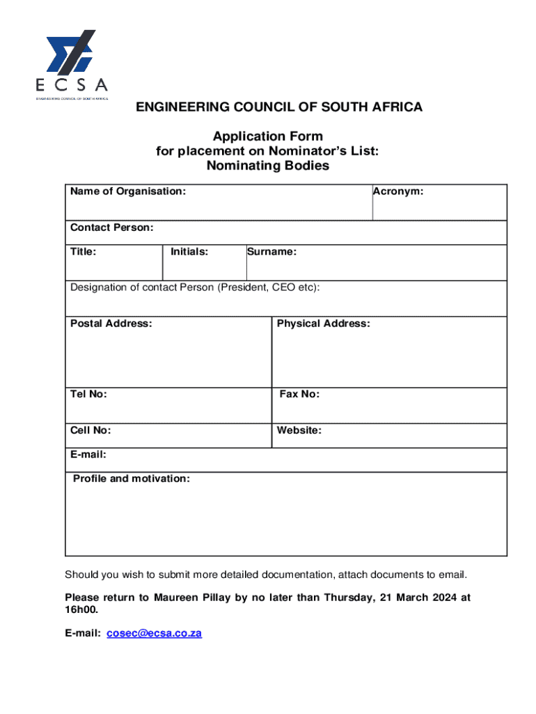 Get the free Application Form-Nominating Bodies