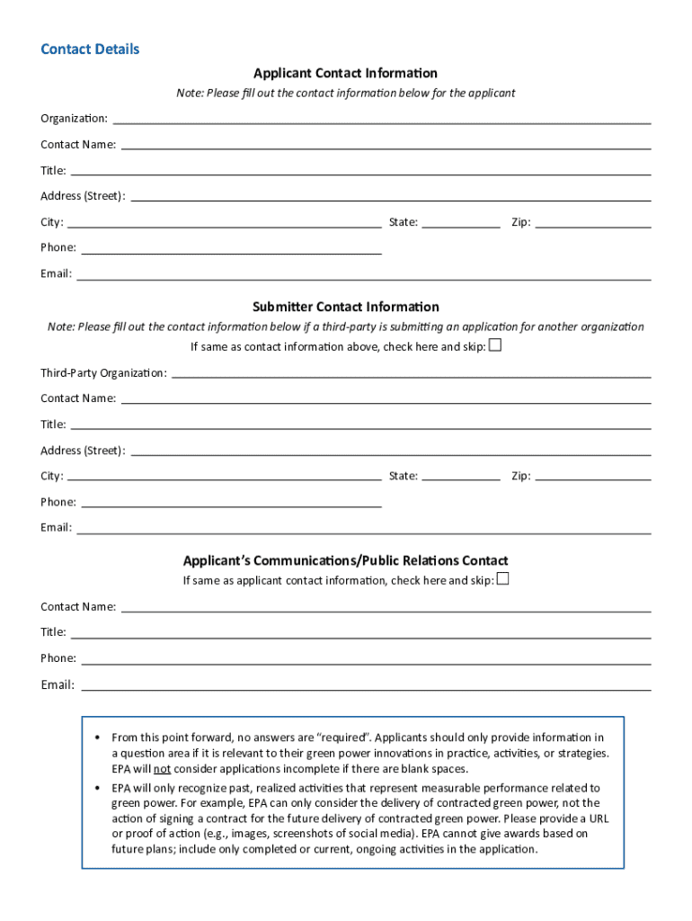 To fill out the Green Power Leadership Awards application, applicants need to provide detailed information about their green power use and initiatives, including data on renewable energy purchases, goals, and achievements. The application form must be completed online or submitted in accordance with the specified guidelines.