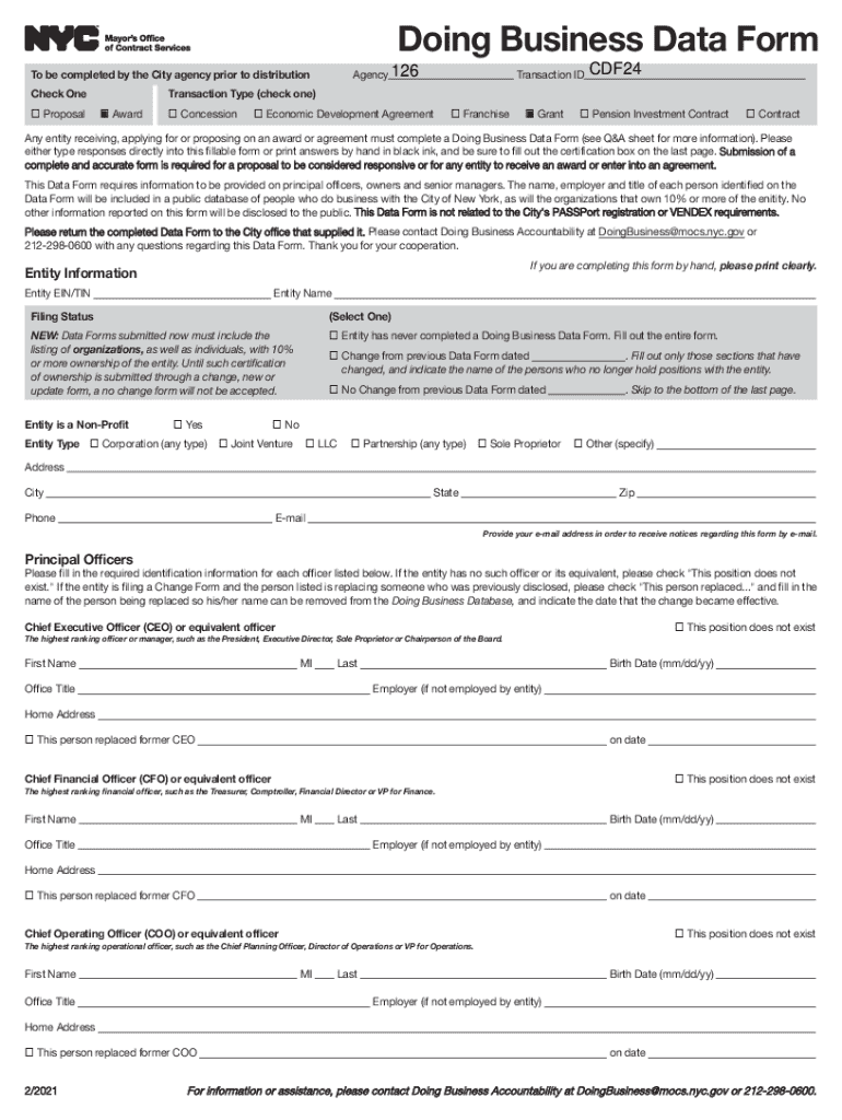 Get the free Doing Business Data FormCity of New York