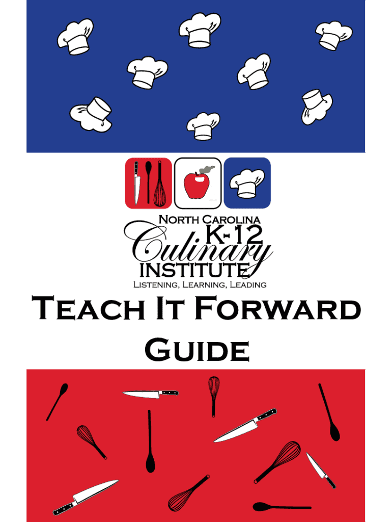 Teach It Forward GuideTEACH IT FORWARD (TIF) GUIDE INTRODUCTIONCongratulations on becoming a North Carolina K12 Culinary Chef Ambassador! You play an important role. As a Chef Ambassador you are Listening,