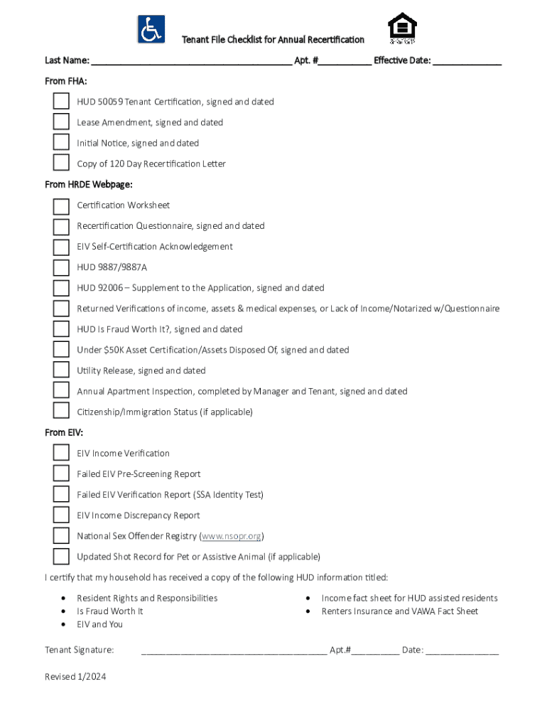Get the free Tenant File Checklist for Annual Recer fica on Last Name