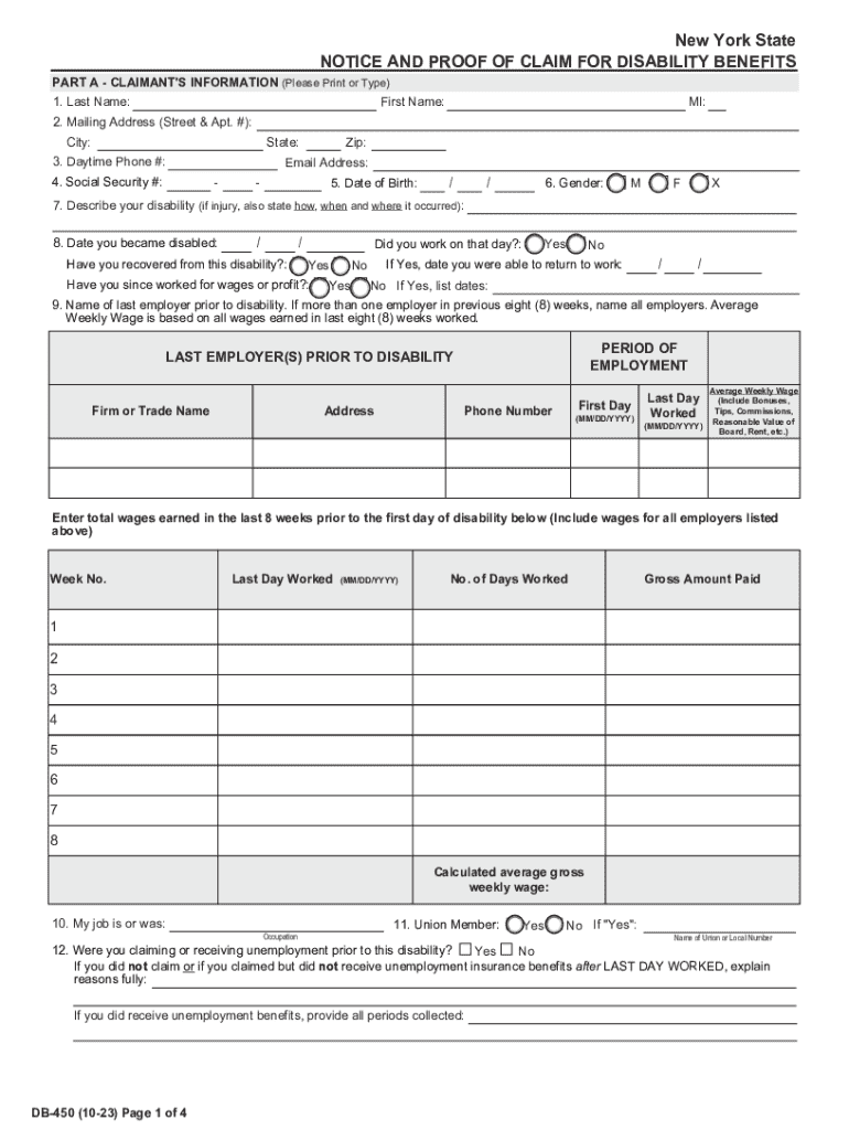 Get the free Notice And Proof Of Claim For Disability Benefits :: New ...