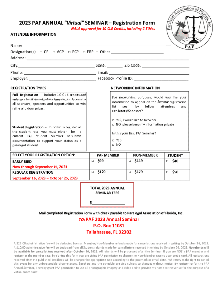 2023 PAF ANNUAL Virtual SEMINAR Registration Form