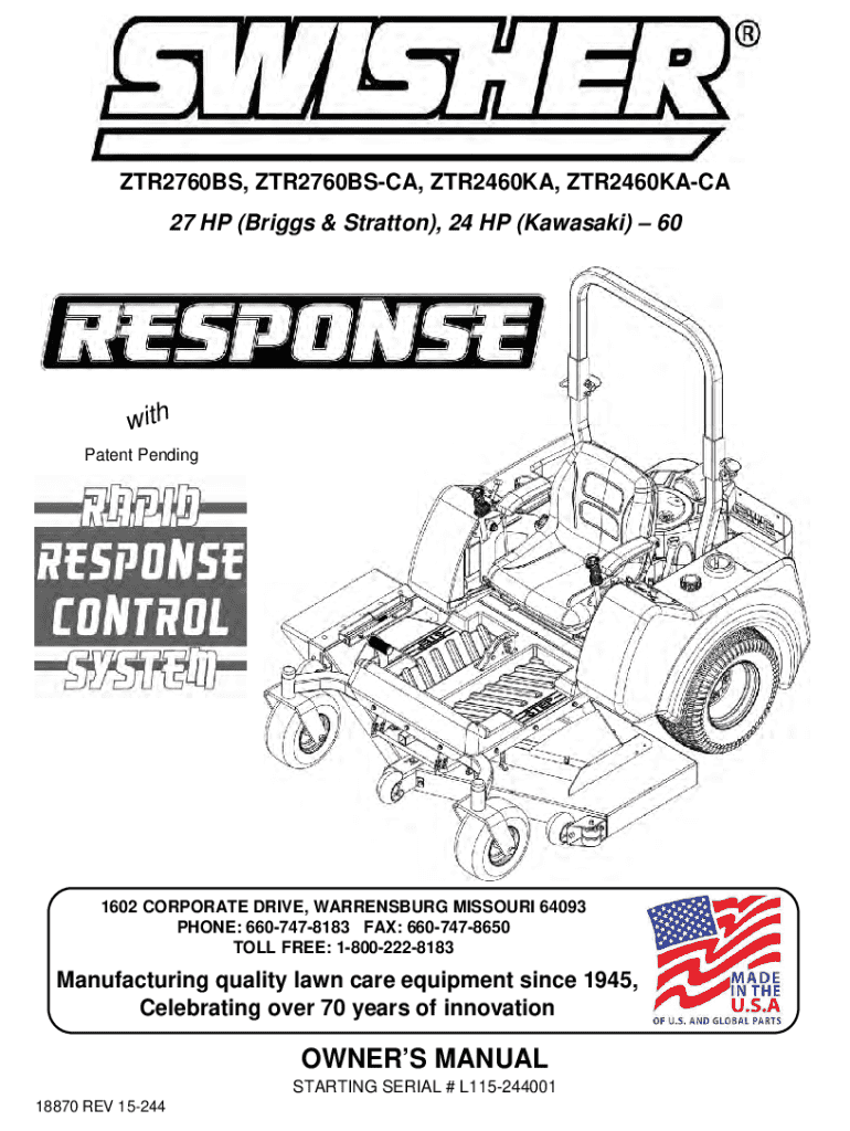 Get the free Response Gen 2 - 24 HP/60" B&S Zero Turn Riding Mower