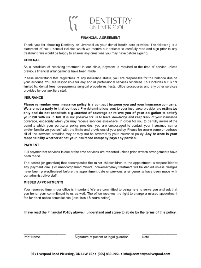How to fill out dental office financial agreement
