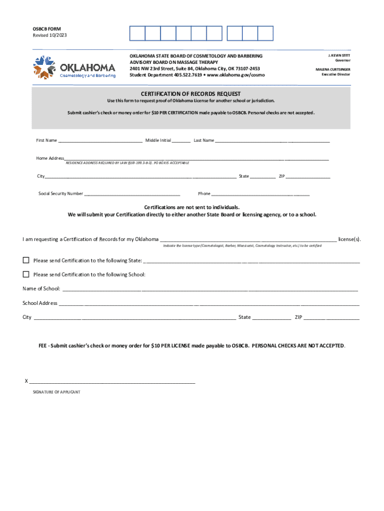 Revised 10/2023OKLAHOMA STATE BOARD OF COSMETOLOGY AND BARBERING