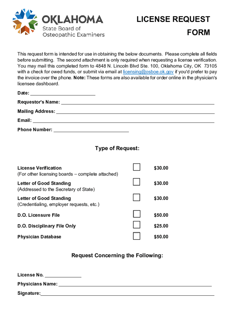 LICENSE REQUEST FORM This request form is intended for use in obtaining the below documents. Please complete all fields before submitting. The second attachment is only required when requesting a