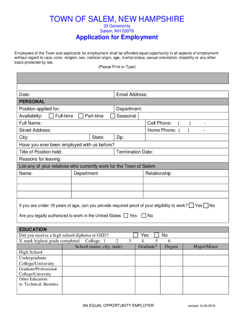 Salem, NH 03079Application for Employment