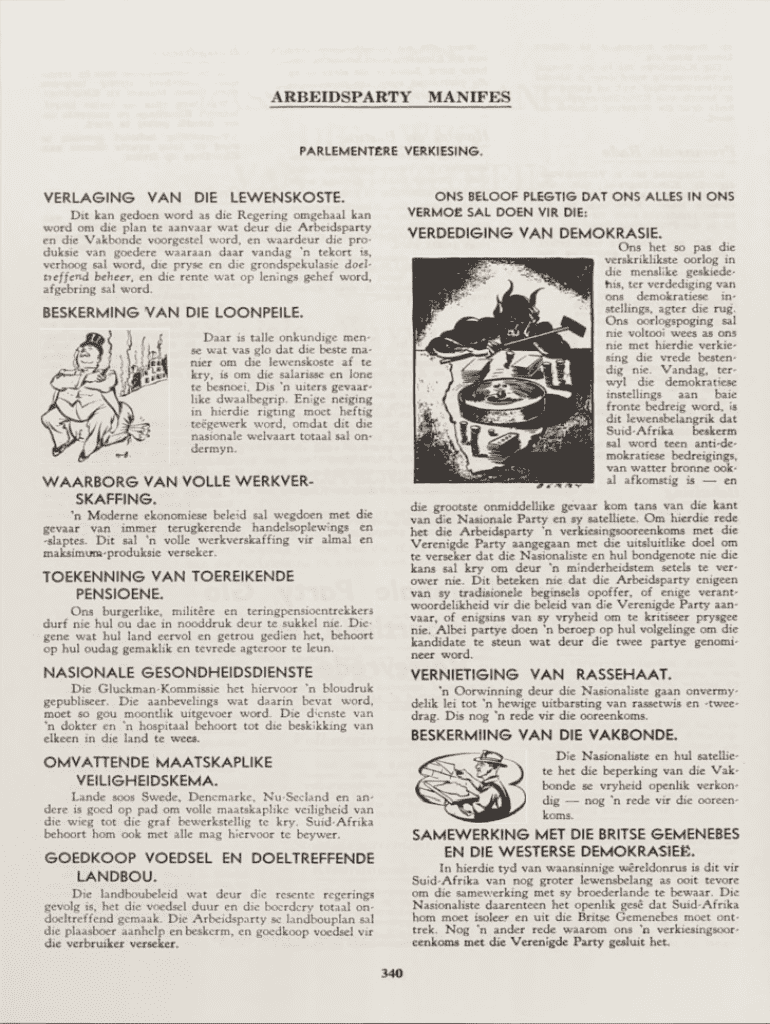 ARBEIDSPARTYMANIFESPARLEMENTRE VERKIESING.ONS BELOOF PLEGTIG DAT ONS ALLES IN ONS VERMO SAL DOEN VIR DIE:VERLAGING VAN DIE LEWENSKOSTE. Dit kan gedoen word as die Regering omgehaal kan word om die