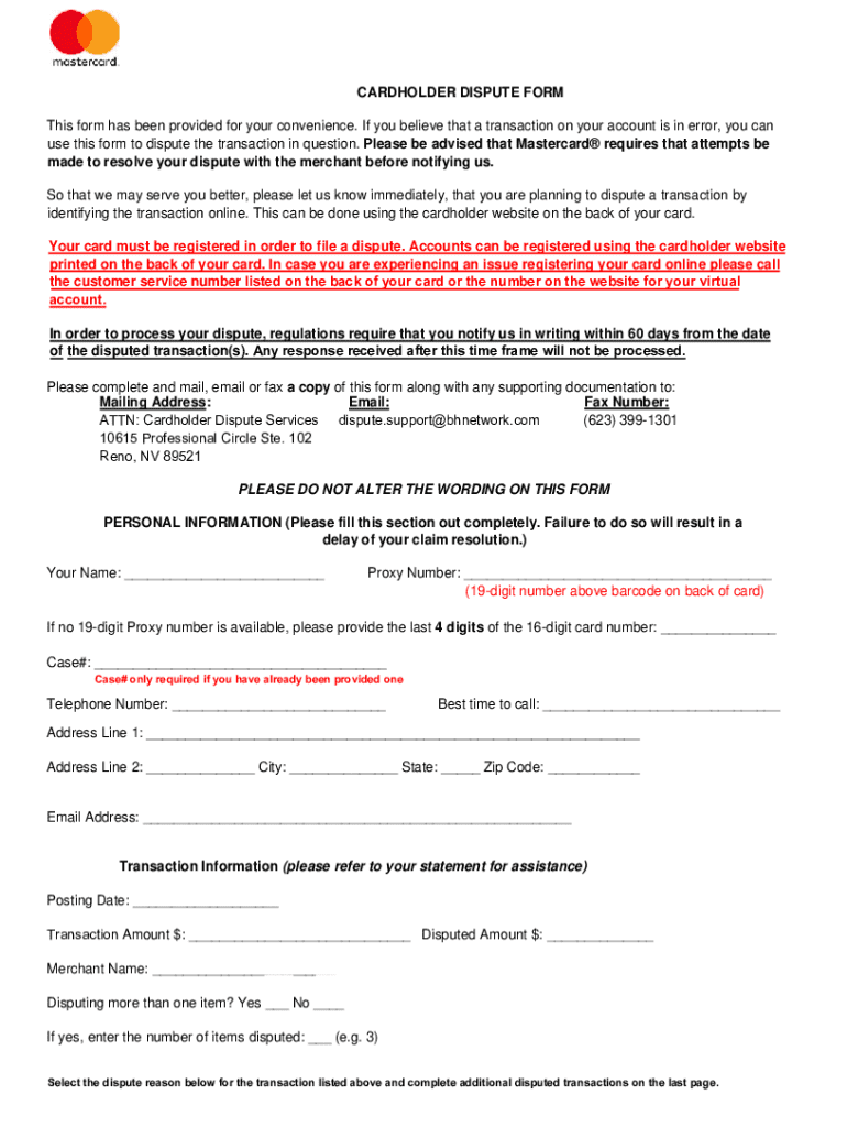 Edit your cardholder dispute form this form online
