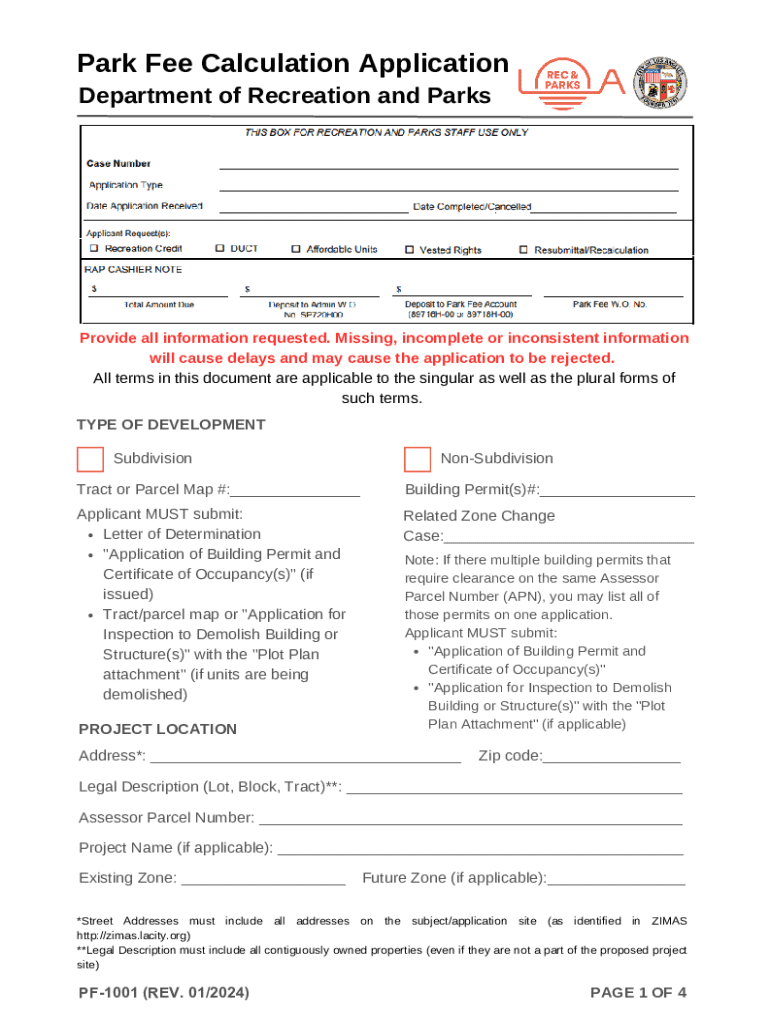 Department of Recreation and ParksProvide all information requested. Missing, incomplete or inconsistent information