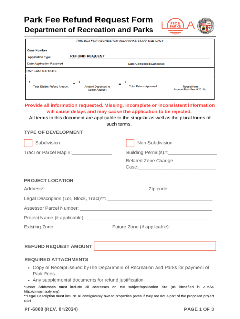 Park Fee Refund Request Form