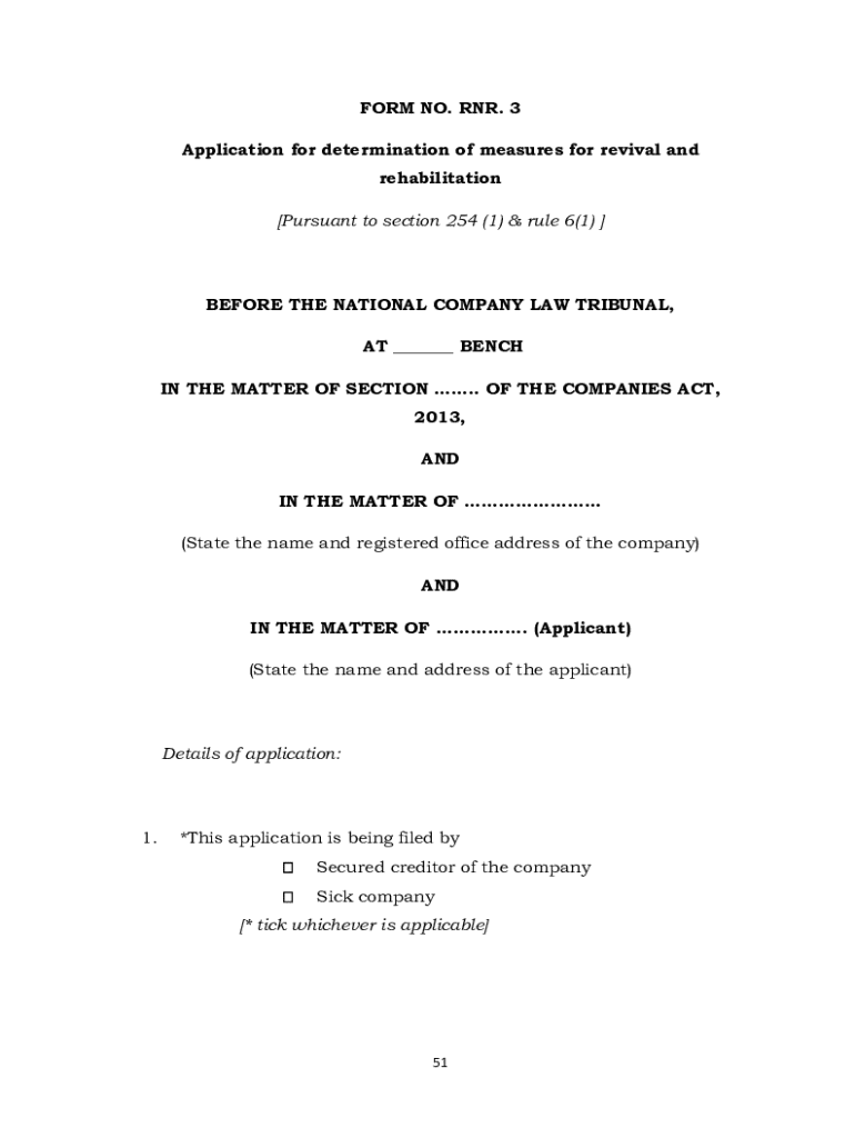 [Pursuant to section 254 (1) & rule 6(1)]BEFORE THE NATIONAL COMPANY LAW TRIBUNAL,