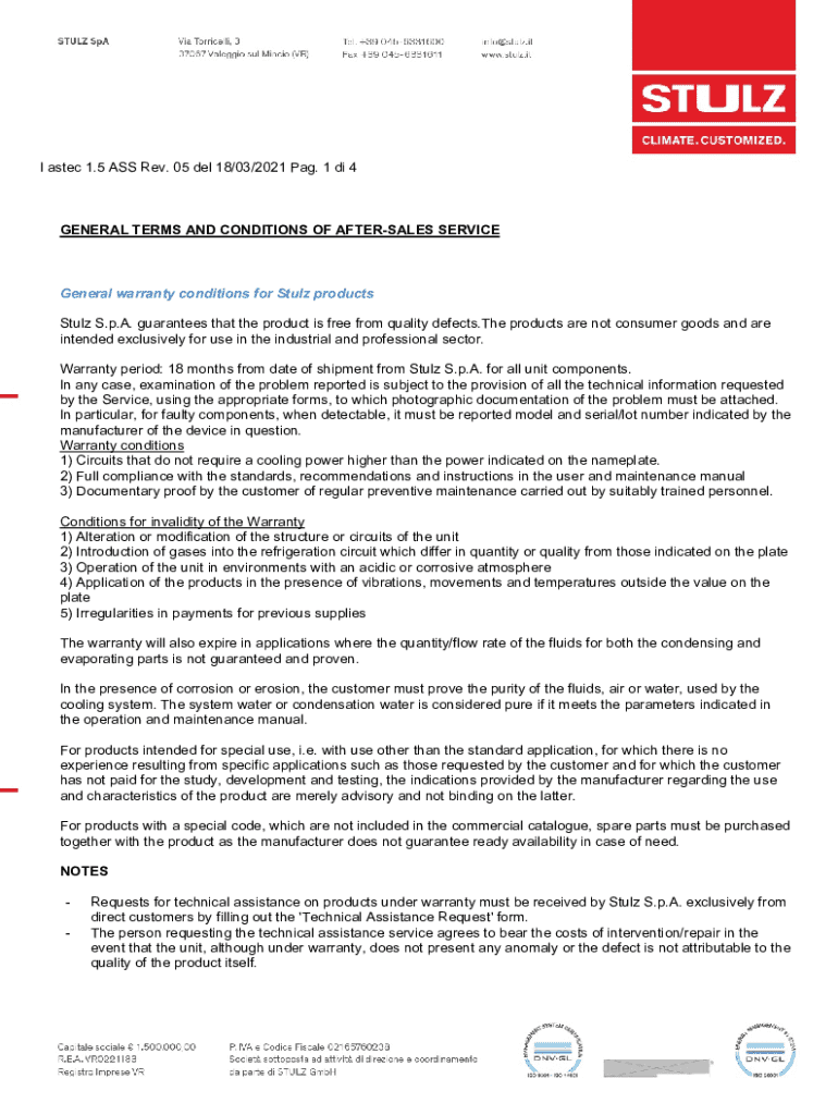 I Aztec 1.5 ASS Rev. 05 Del 18/03/2021 PAG. 1 DI 4GENERAL TERMS AND CONDITIONS OF AFTERWALES SERVICEGeneral warranty conditions for Still products