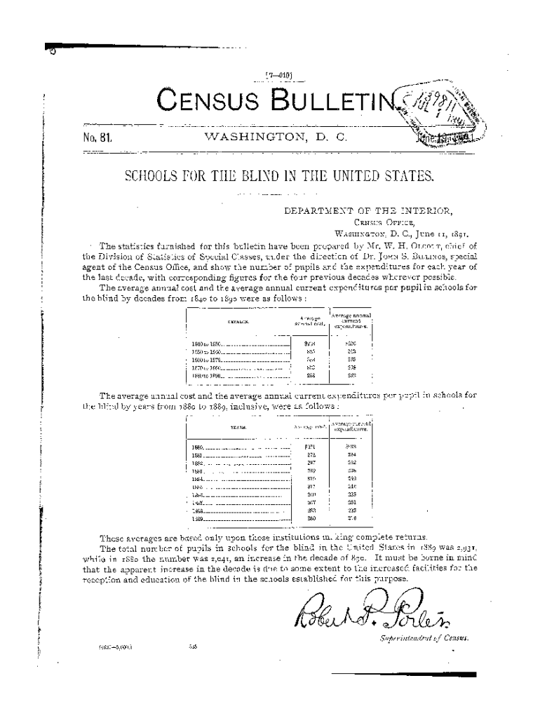 Get the free Bulletin 81. Schools for the Blind in the United States. - www2 census