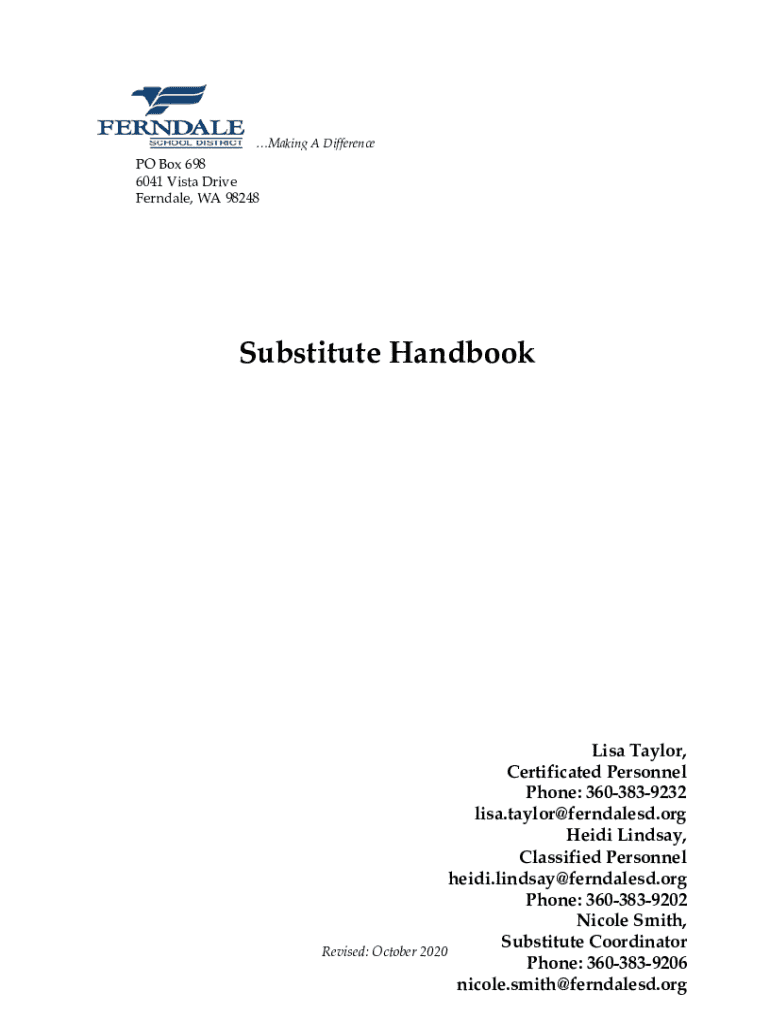 Fern dale, WA 98248Substitute Handbook Lisa Taylor,